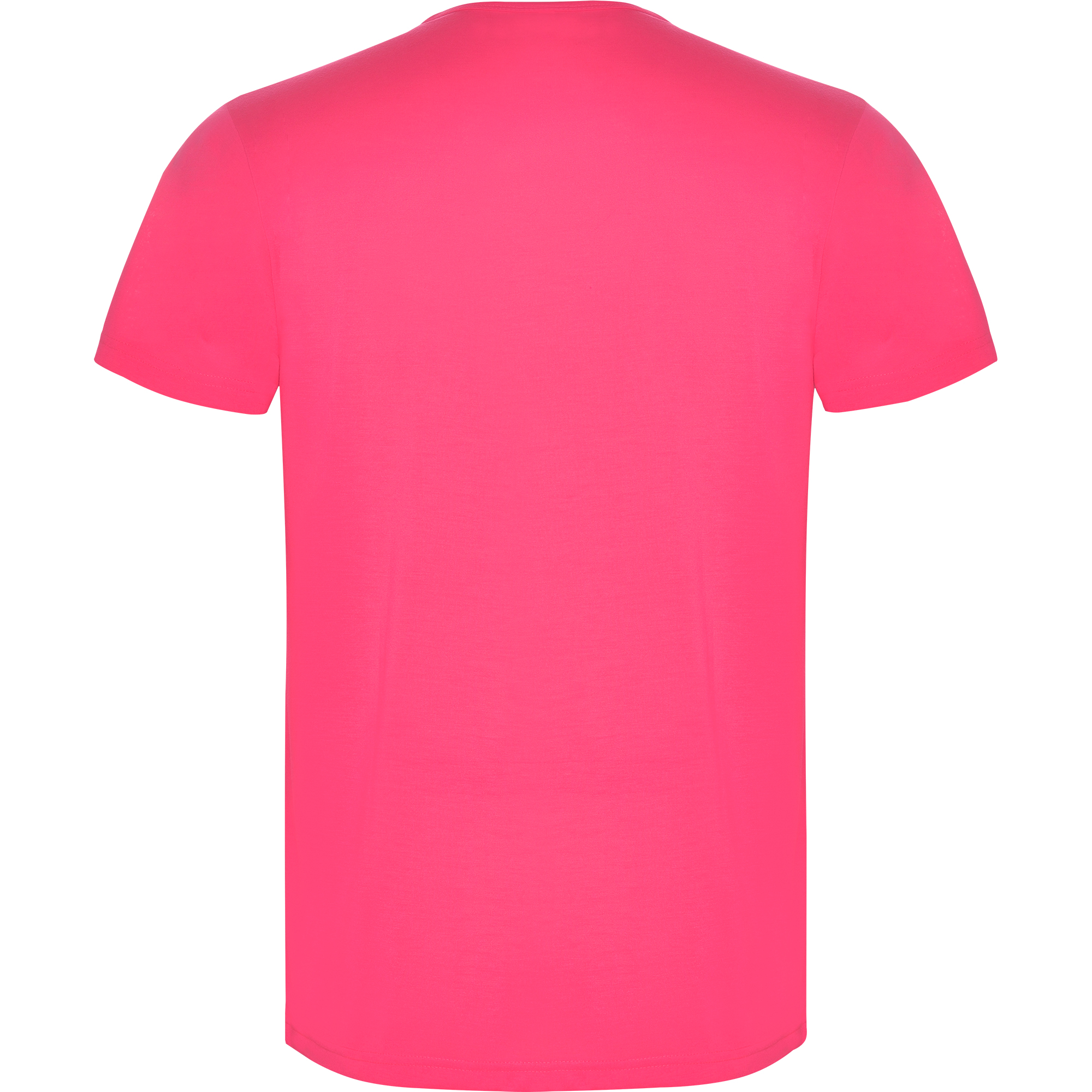 Camiseta de manga corta en colores flúor. Cuello redondo y cubrecosturas de refuerzo en el interior. Fabricado en tejido poliéster con tacto algodón.