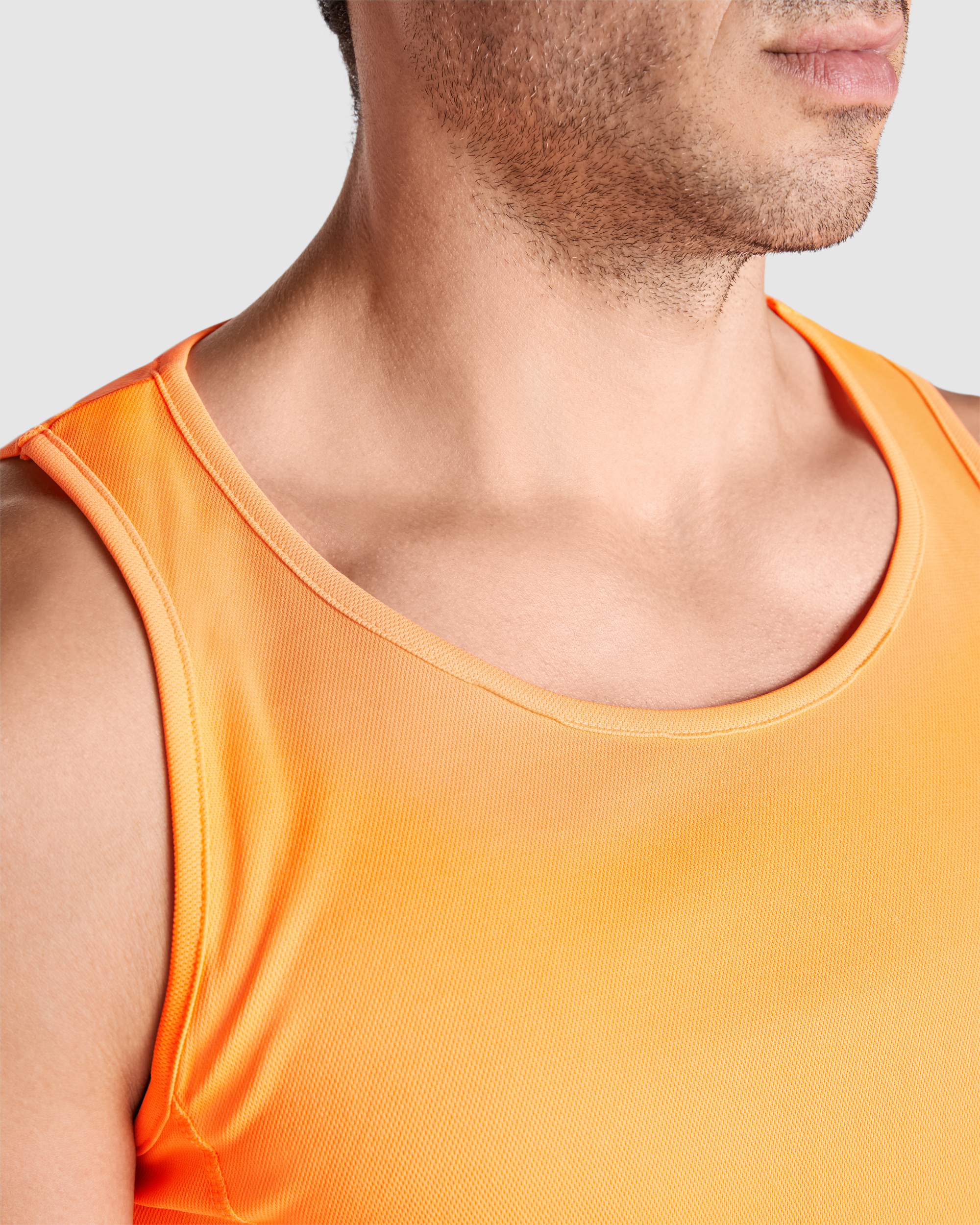 Camiseta técnica de tirantes. Costura angular para mejorar adaptación.