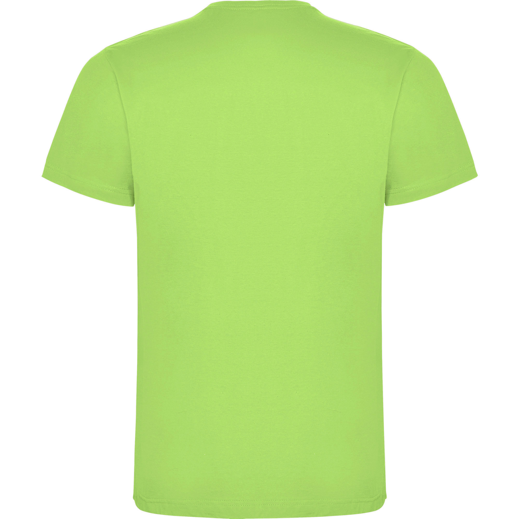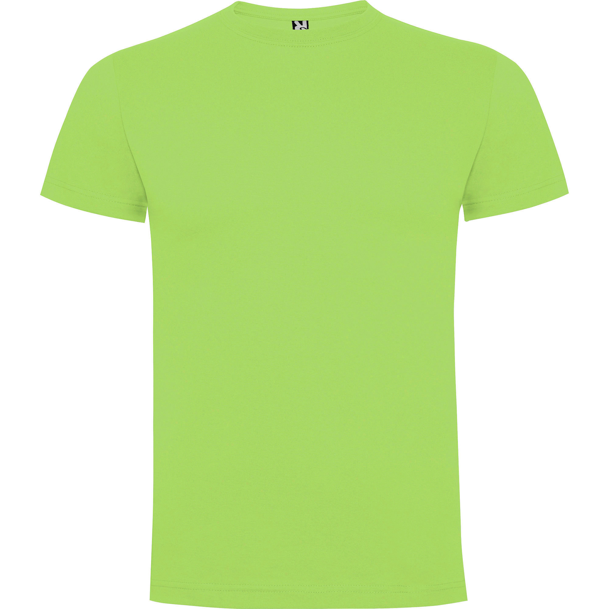Camiseta de manga corta. Cuello redondo de 4 capas en canalé 1×1 con cubrecosturas de hombro a hombro. Costuras laterales.