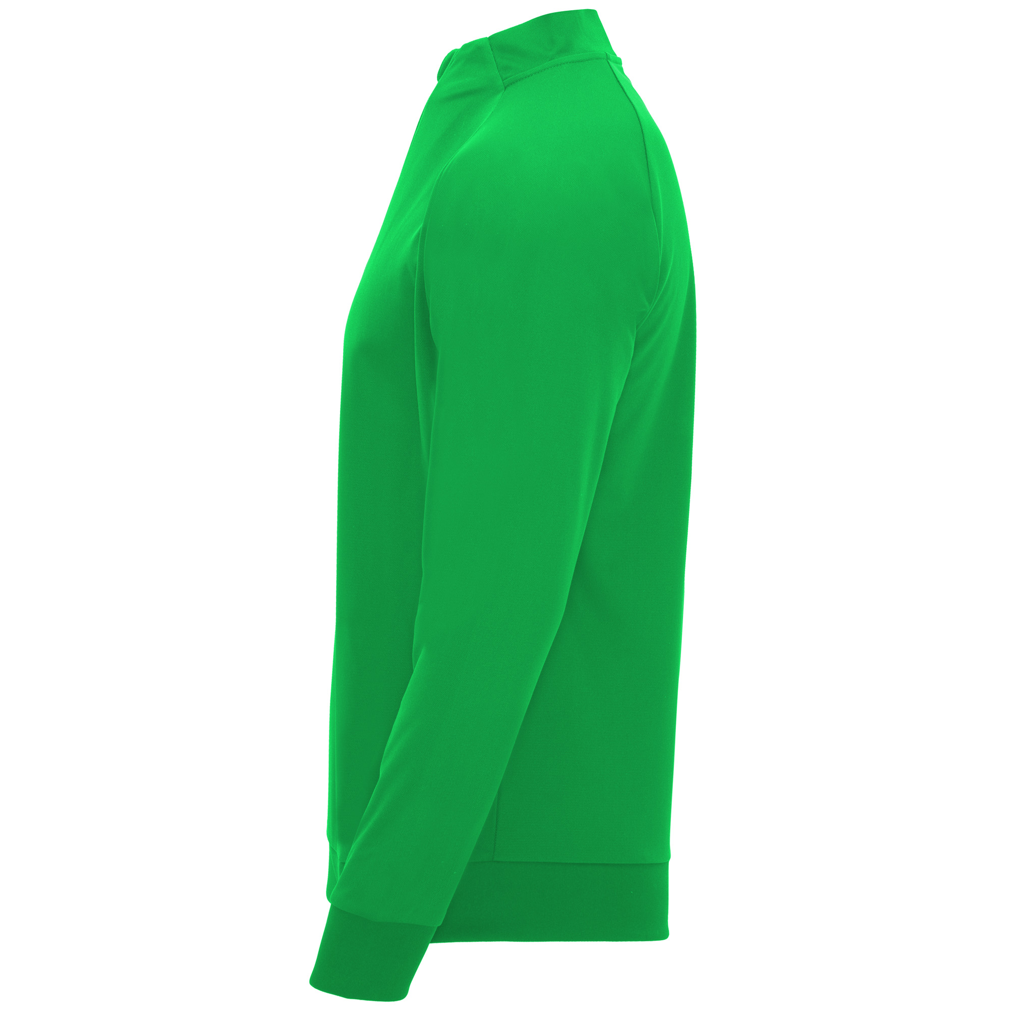 Sudadera de manga ranglán, con Interior perchado, cuello con media cremallera y cubrecosturas de refuerzo en su interior a tono. Parte posterior del cuello, puños y bajo en canalé 1×1.
