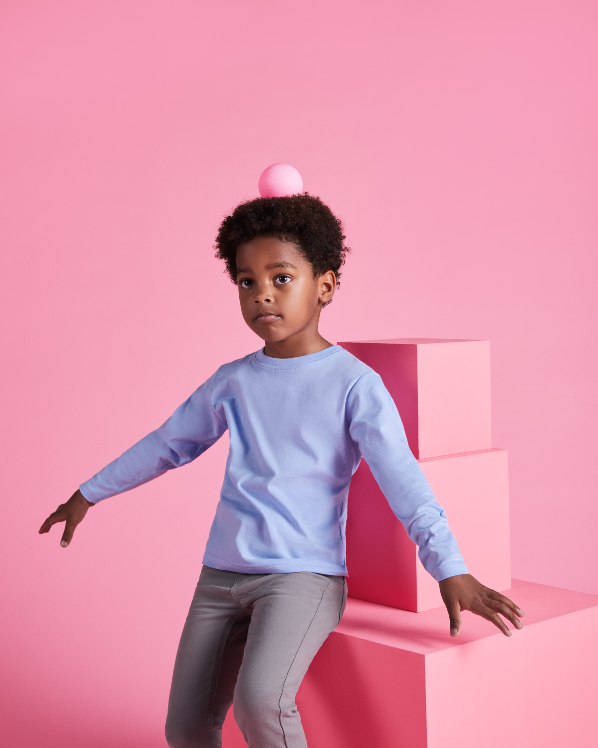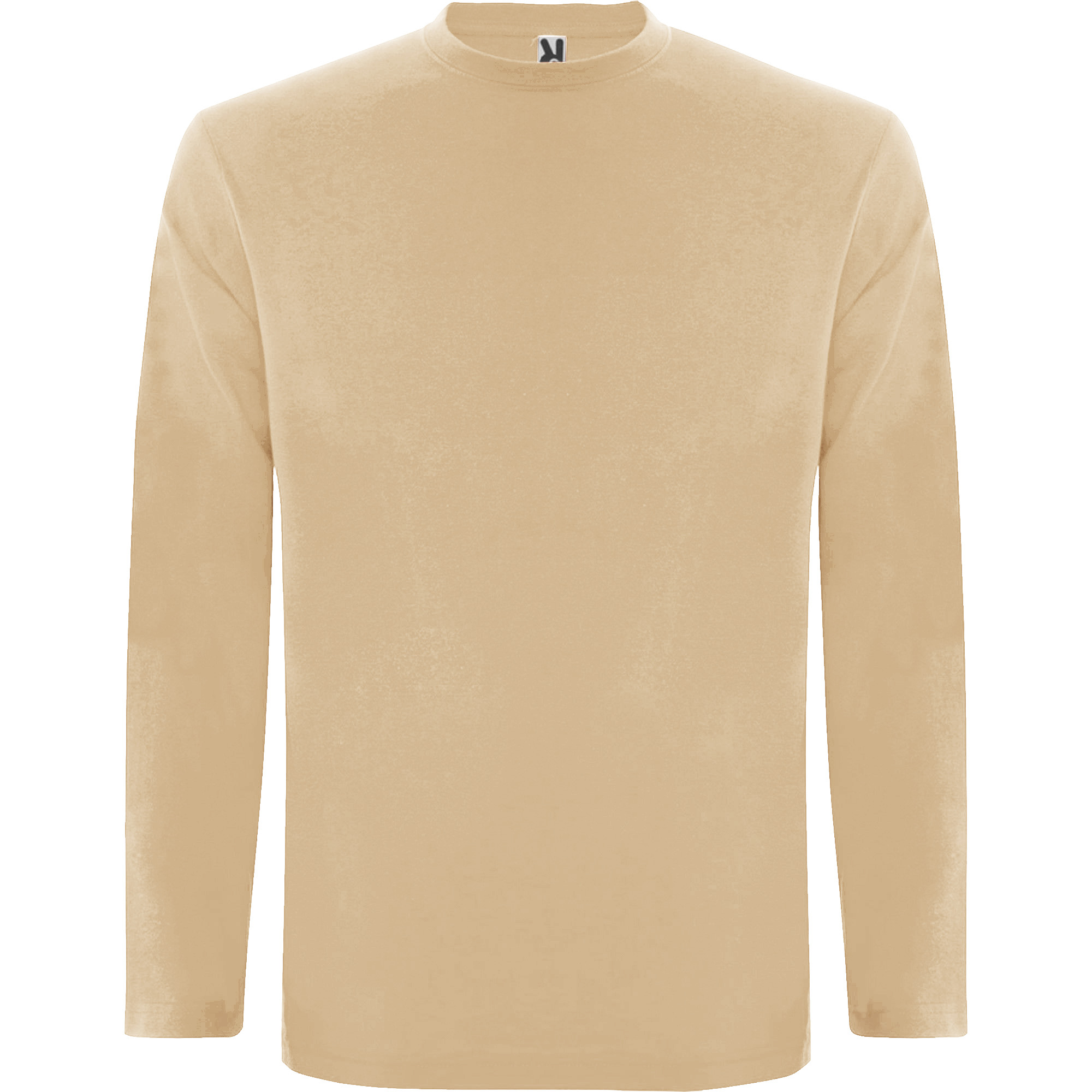 Camiseta de manga larga, tejido tubular y cuello redondo de 4 capas. Cubrecosturas de refuerzo en cuello y hombro. Sin puños.