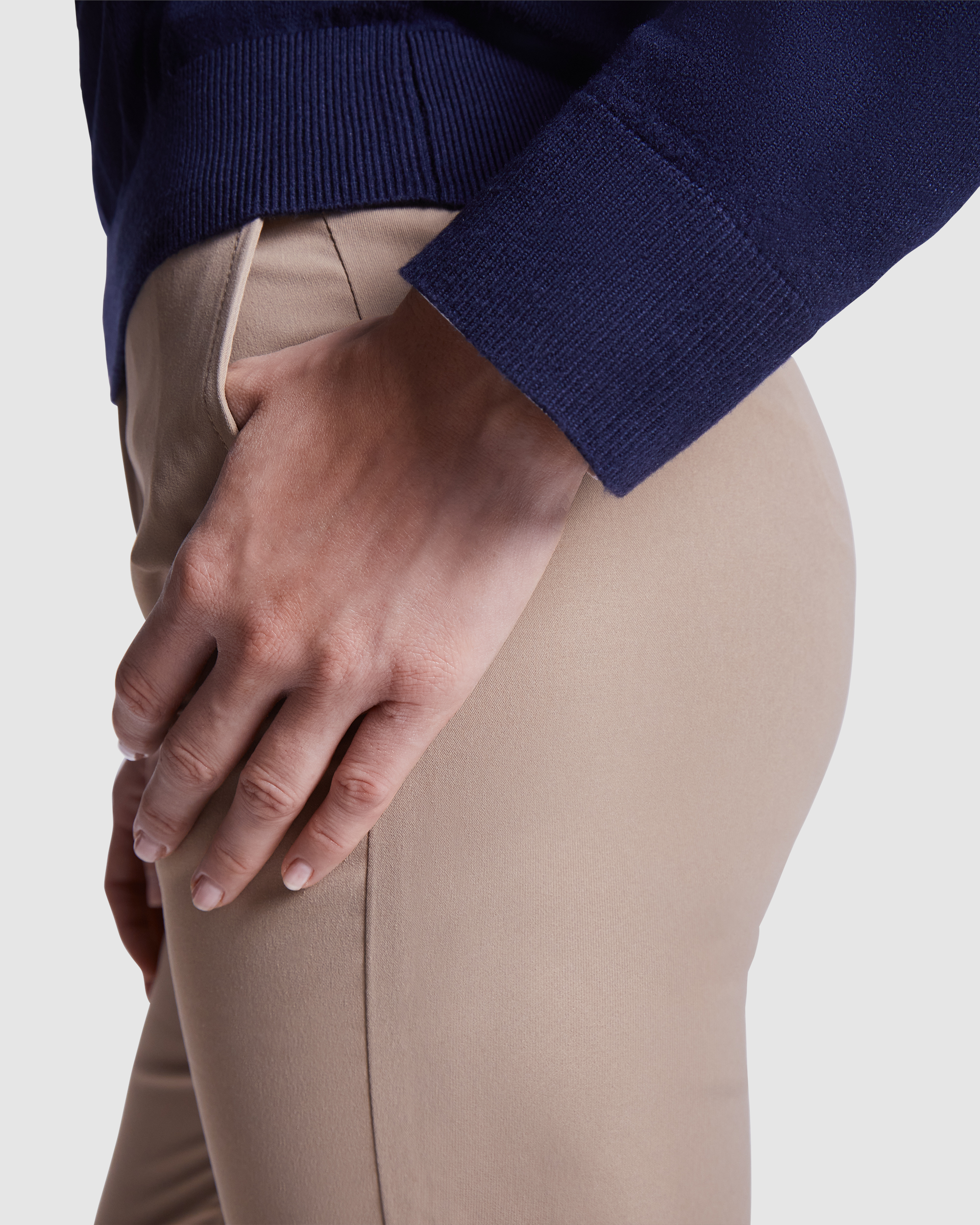 Acabado en punto de canalé 1×1 al tono en escote, puños y bajo.