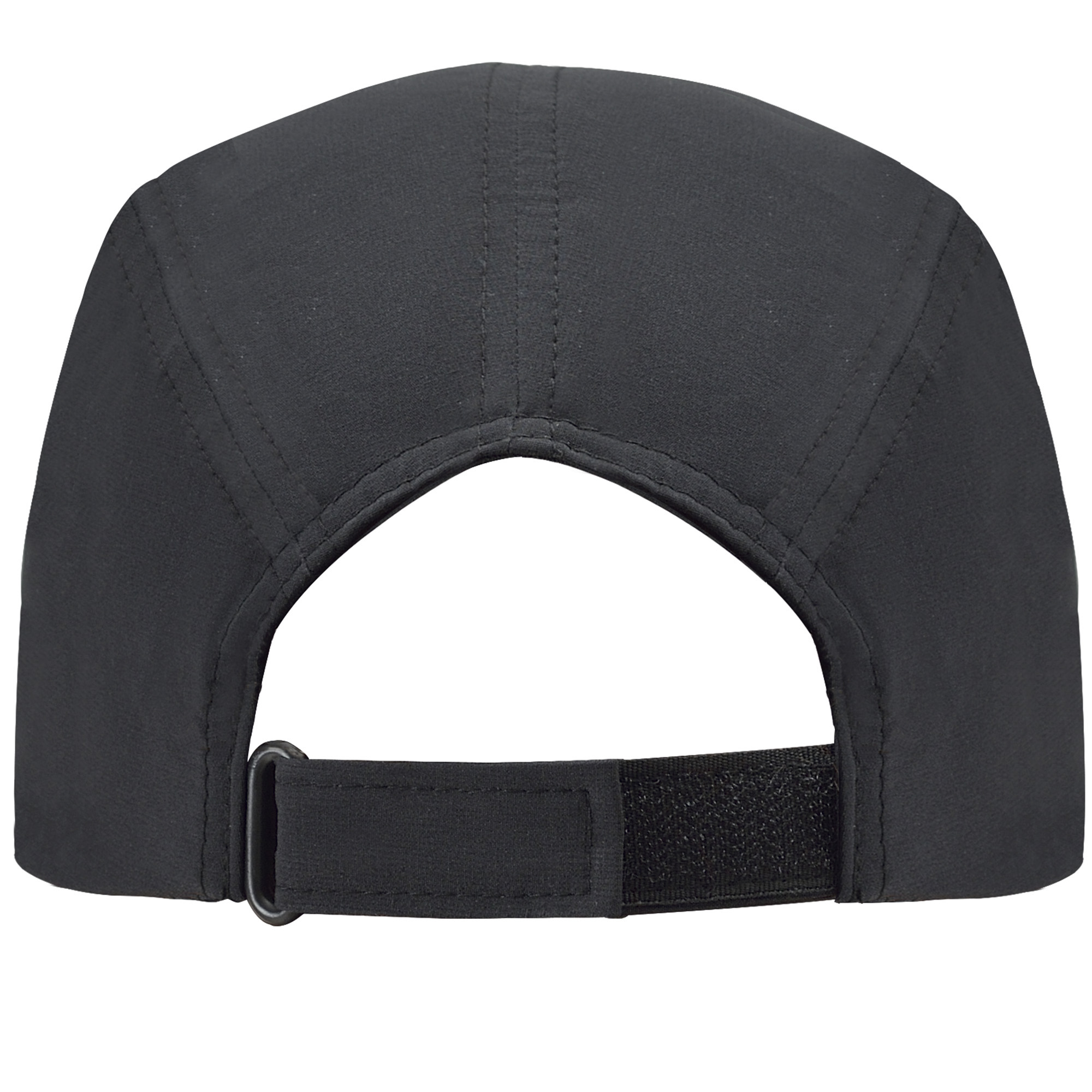 Gorra técnica de tres paneles. Tejido ligero y transpirable con cierre ajustable de velcro en la parte posterior. Frontal especial para reprocesos.