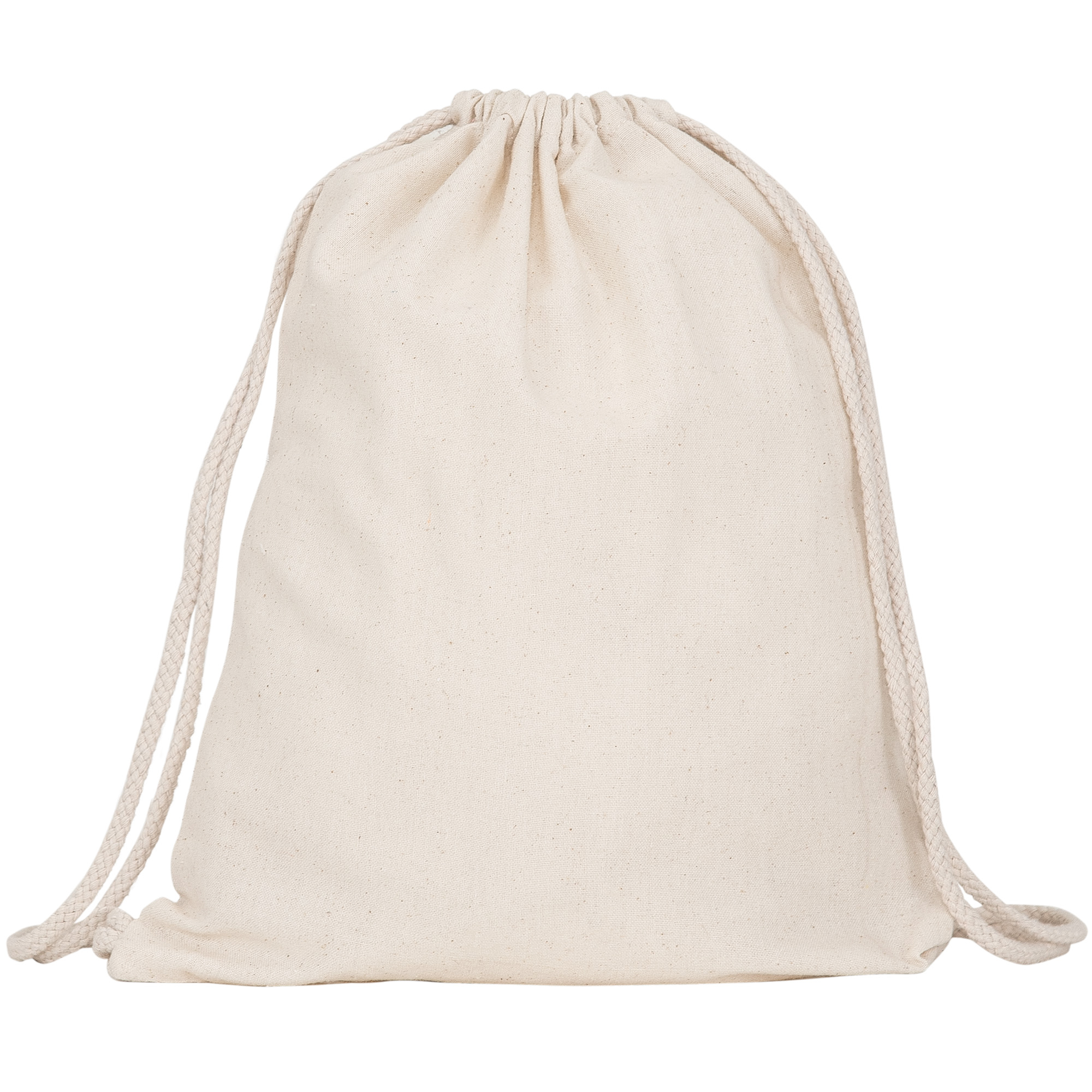 Mochila multiusos de algodón de 140 g/m² con cordones de ajuste a la espalda a tono, de 8 mm de grosor.