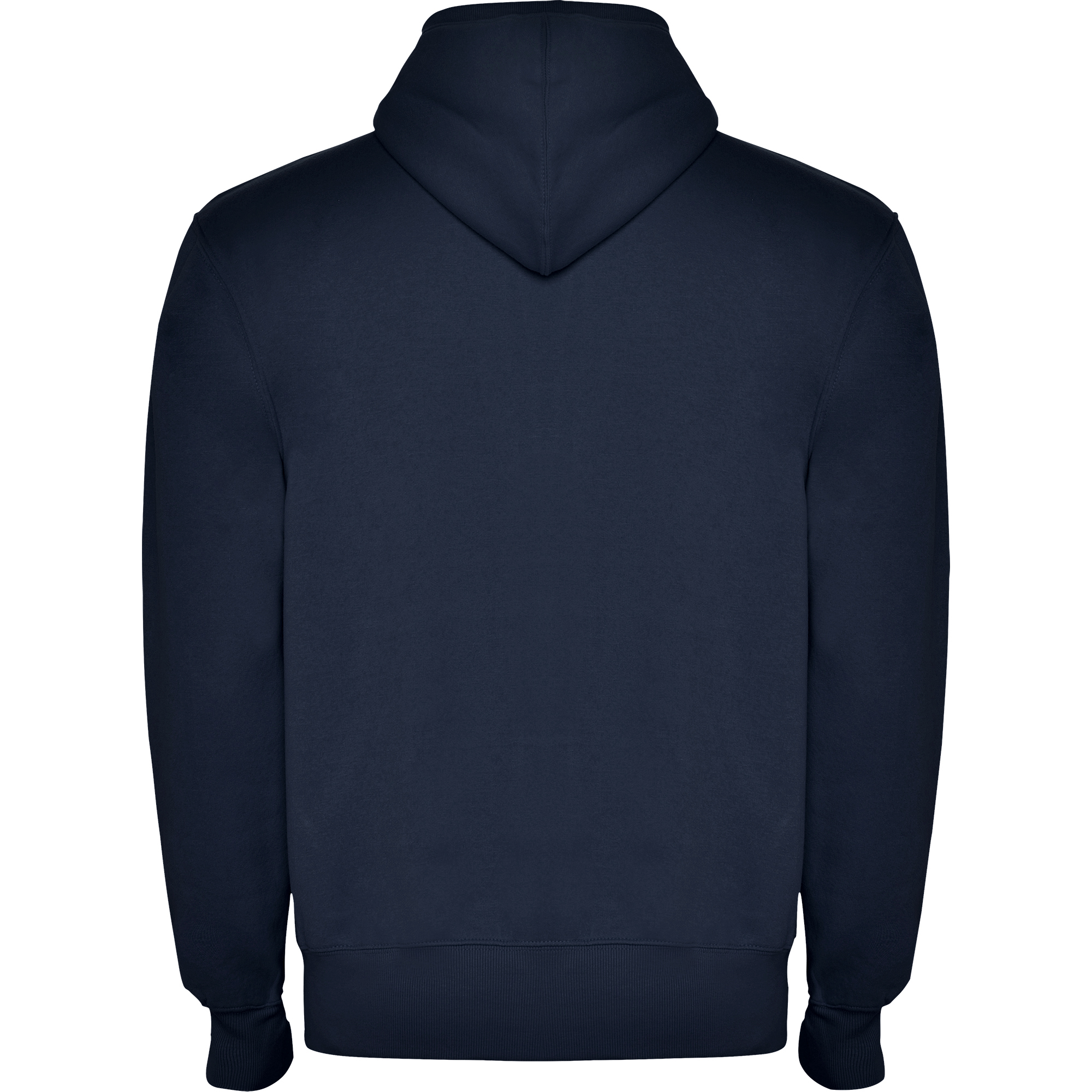 Sudadera con capucha, cuello alto y cremallera completa. Detalle canalé en contorno capucha y bolsillos. Bolsillo estilo canguro. Punto canalé 2×2 en puños y cintura.