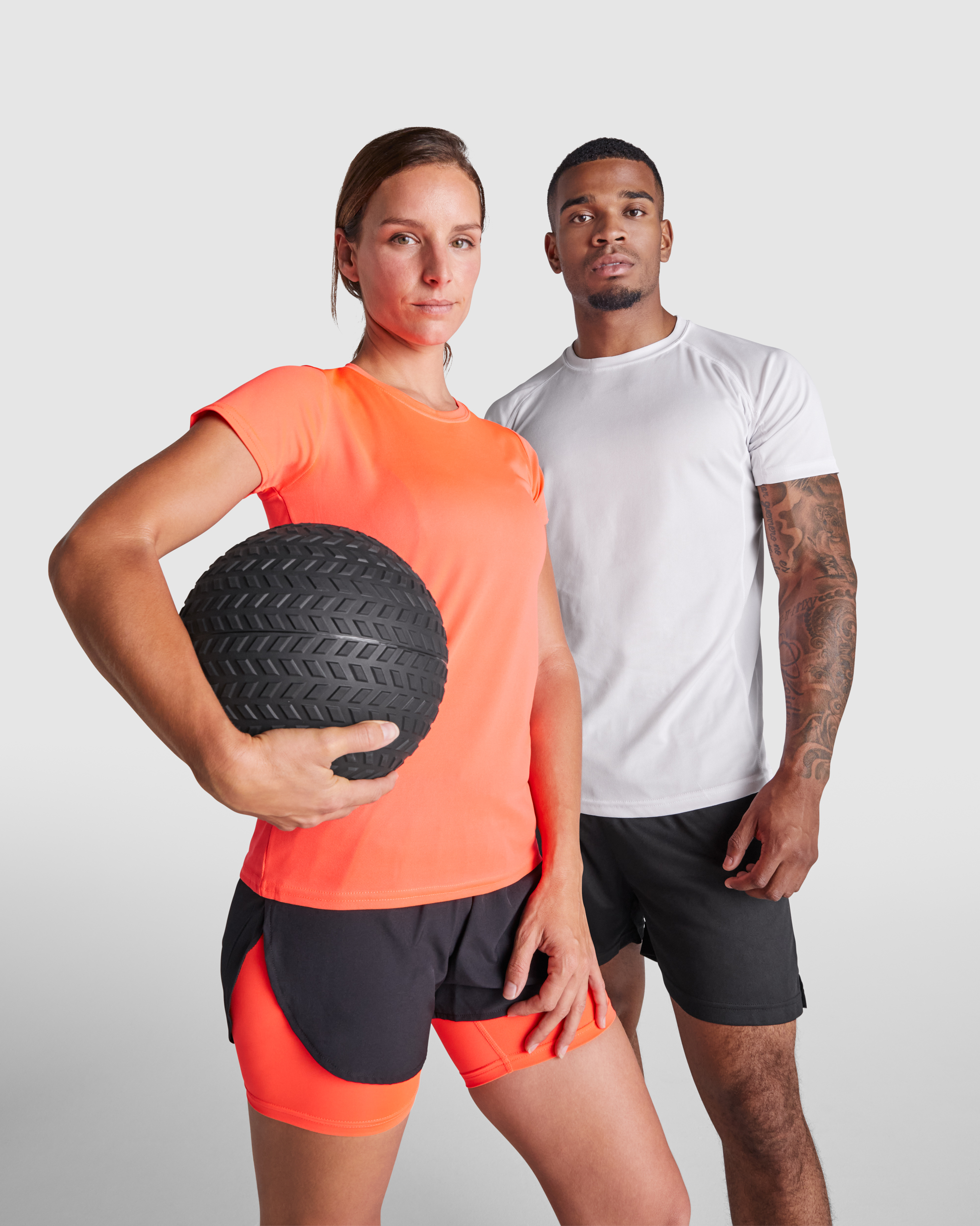 Camiseta técnica de manga corta. Cuello redondo con cubrecosturas. Corte entallado.