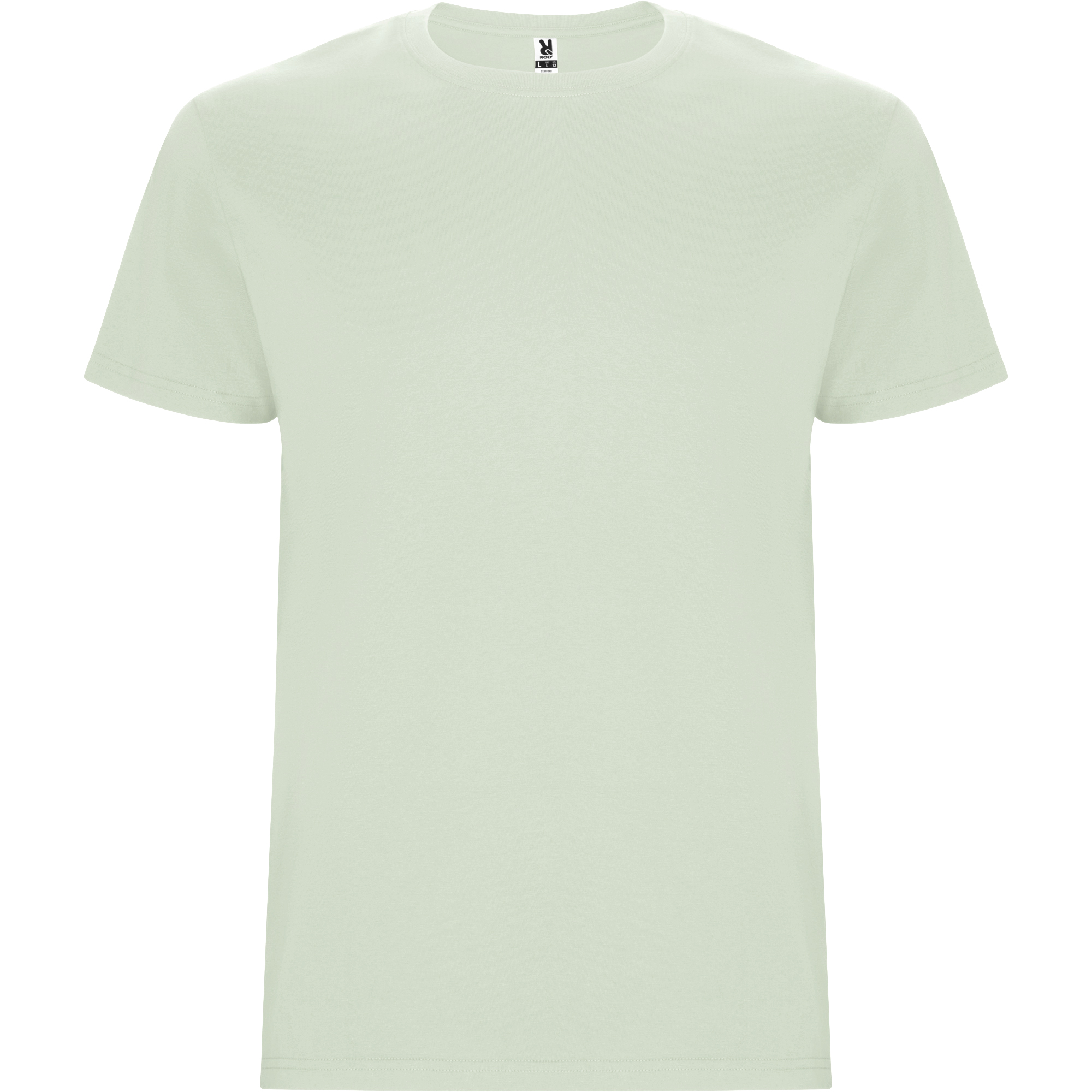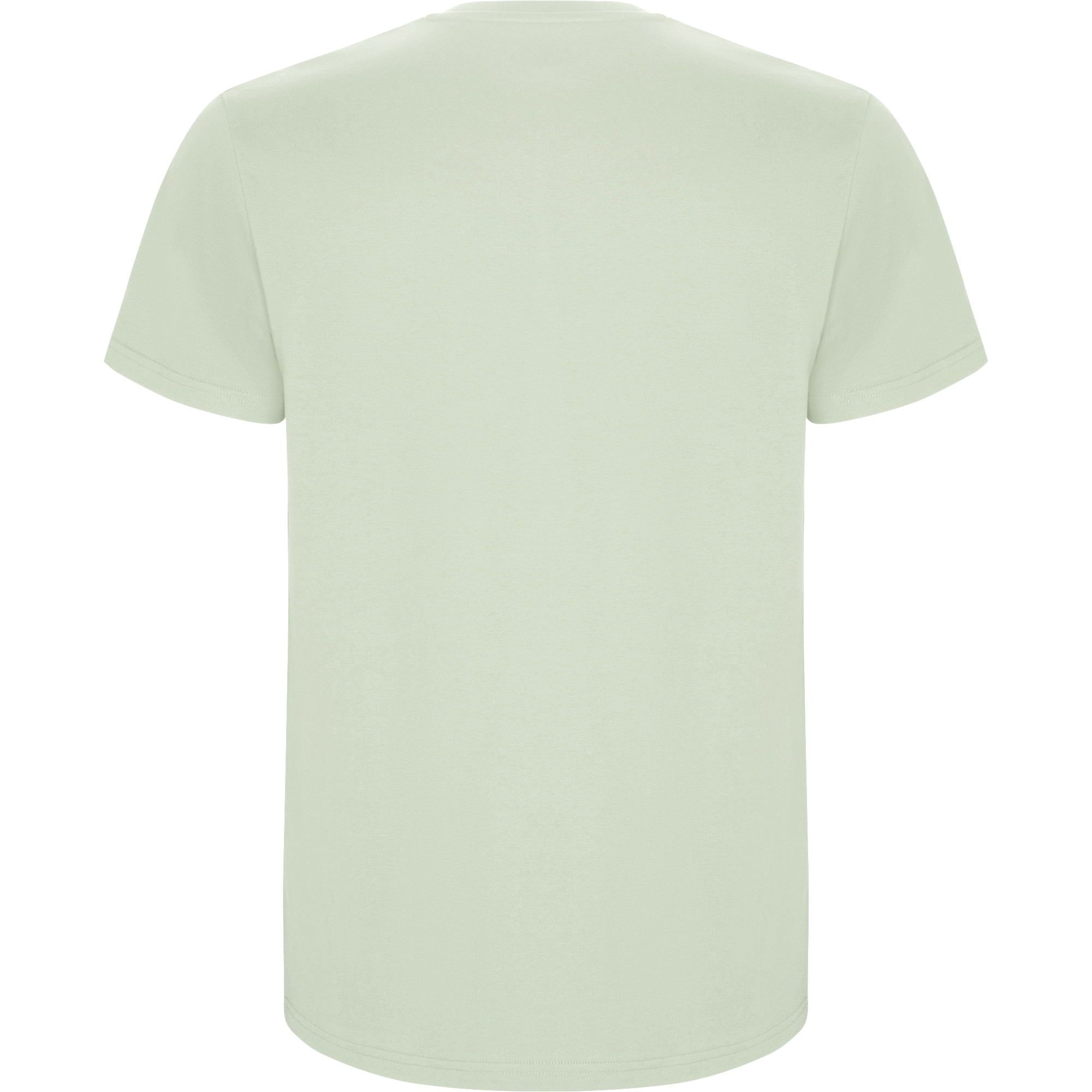 Camiseta tubular de manga corta. Cuello redondo con elastano. Costuras laterales en tallas de niño.